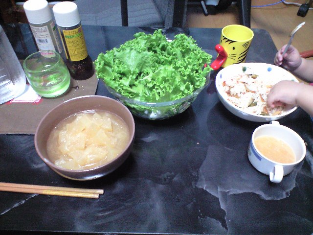 手前にあるモリモリのレタスとシブイの汁物は自分のご飯ですw