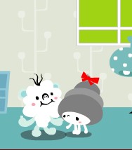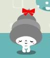 まだ成長途中のこんがらがっちゃ。灰色の巻貝の上にちょこんとリボン。